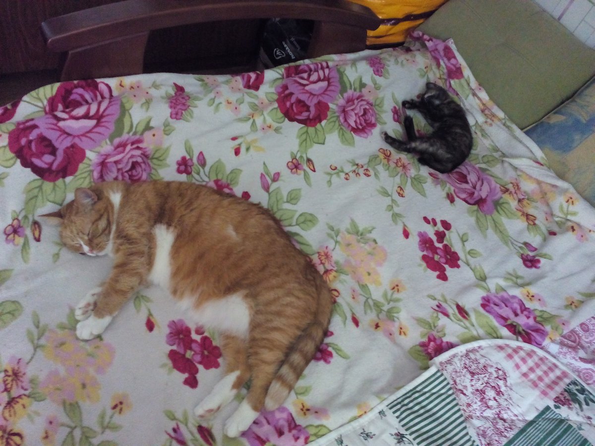 Спать Танка мастер, тут ей равных нет. По ночам она приходит ко мне и ложится в изголовье кровати, громко мурча. А днём она спит примерно вот так (не верьте кошке, это не голодный обморок) pic.twitter.com/lsalSkX0G0