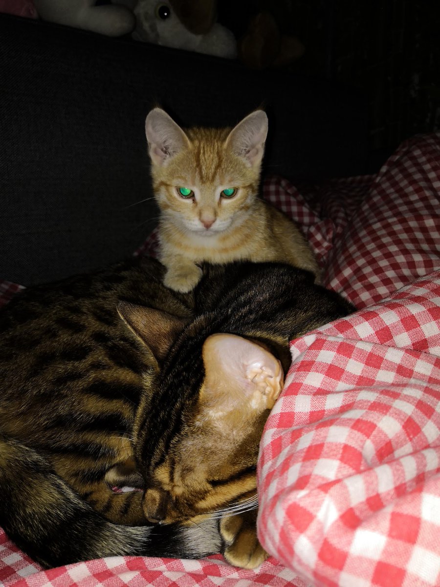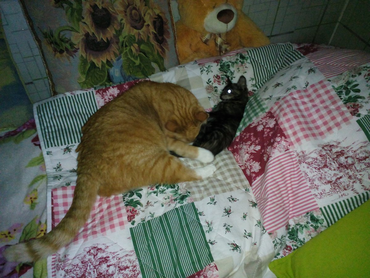 Кузя и юная Танка. Вот так они меня ждали из отпуска, тусуя каждый день на моей кровати. pic.twitter.com/3i7l2gGs42