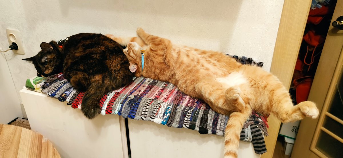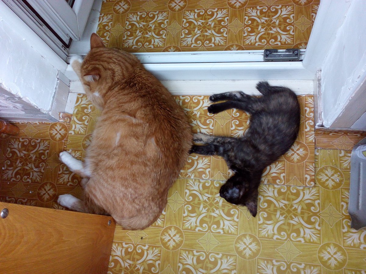Прогулки на балконе. Танка тоже полюбила солнечные ванны, как и Кузя. На этой фотографии они вполне миролюбиво загорают…а через несколько секунд началась драка, если мне не изменяет память. pic.twitter.com/RDqzzzLjmA