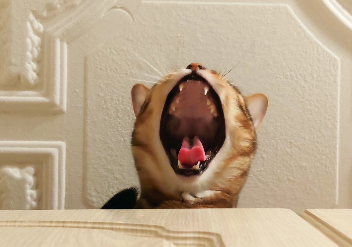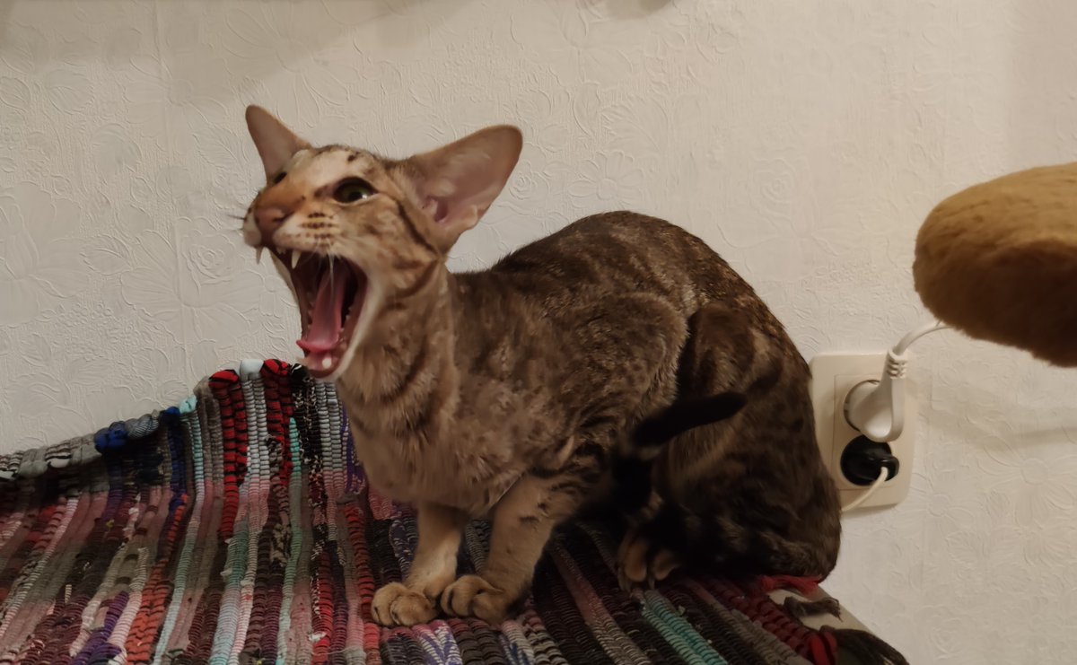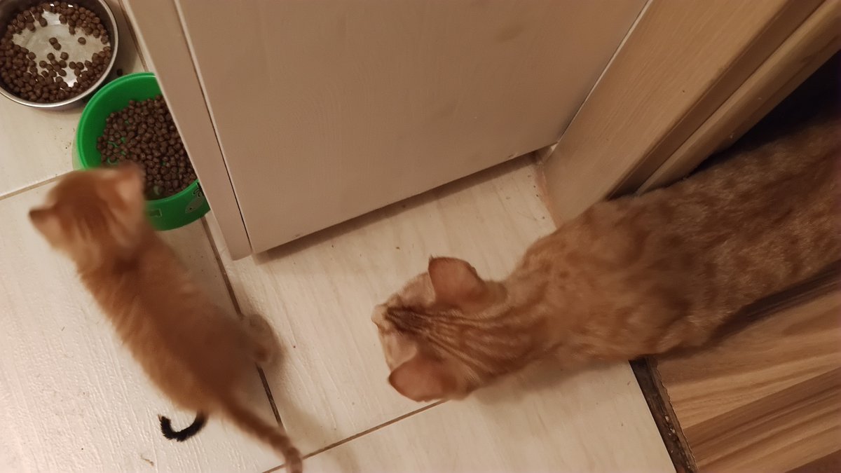 А вот примерно так происходит поедание вкуснях. Кот либо хватает зубами лакомство, либо же, если вкусняху подкинуть, то зачем-то отбивает её лапой, и только уже потом подбегает и съедает. Иногда не успевает добежать, так как его опережает более удачливый конкурент. pic.twitter.com/rrZ5D1q3Gv