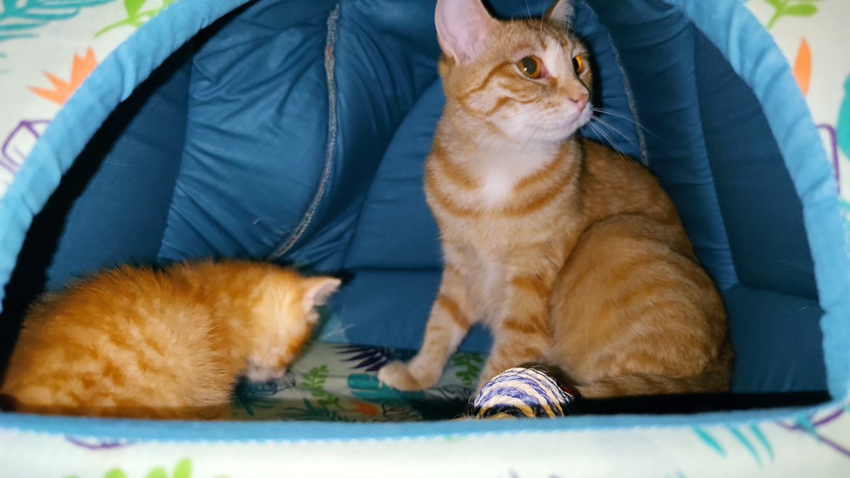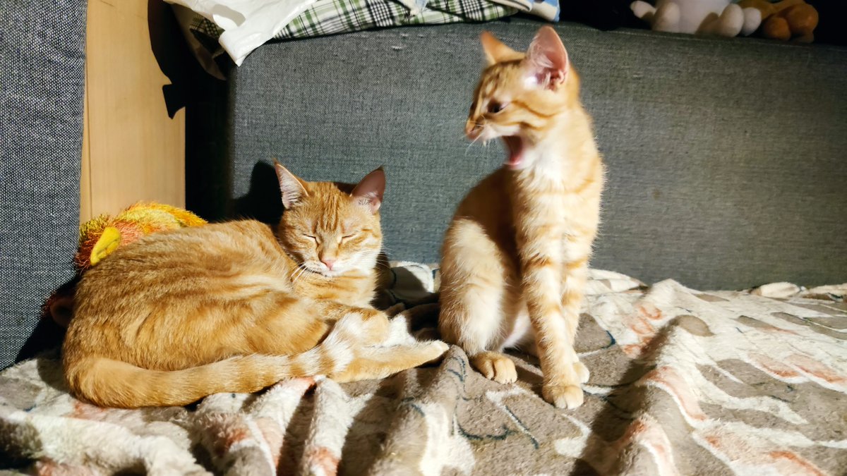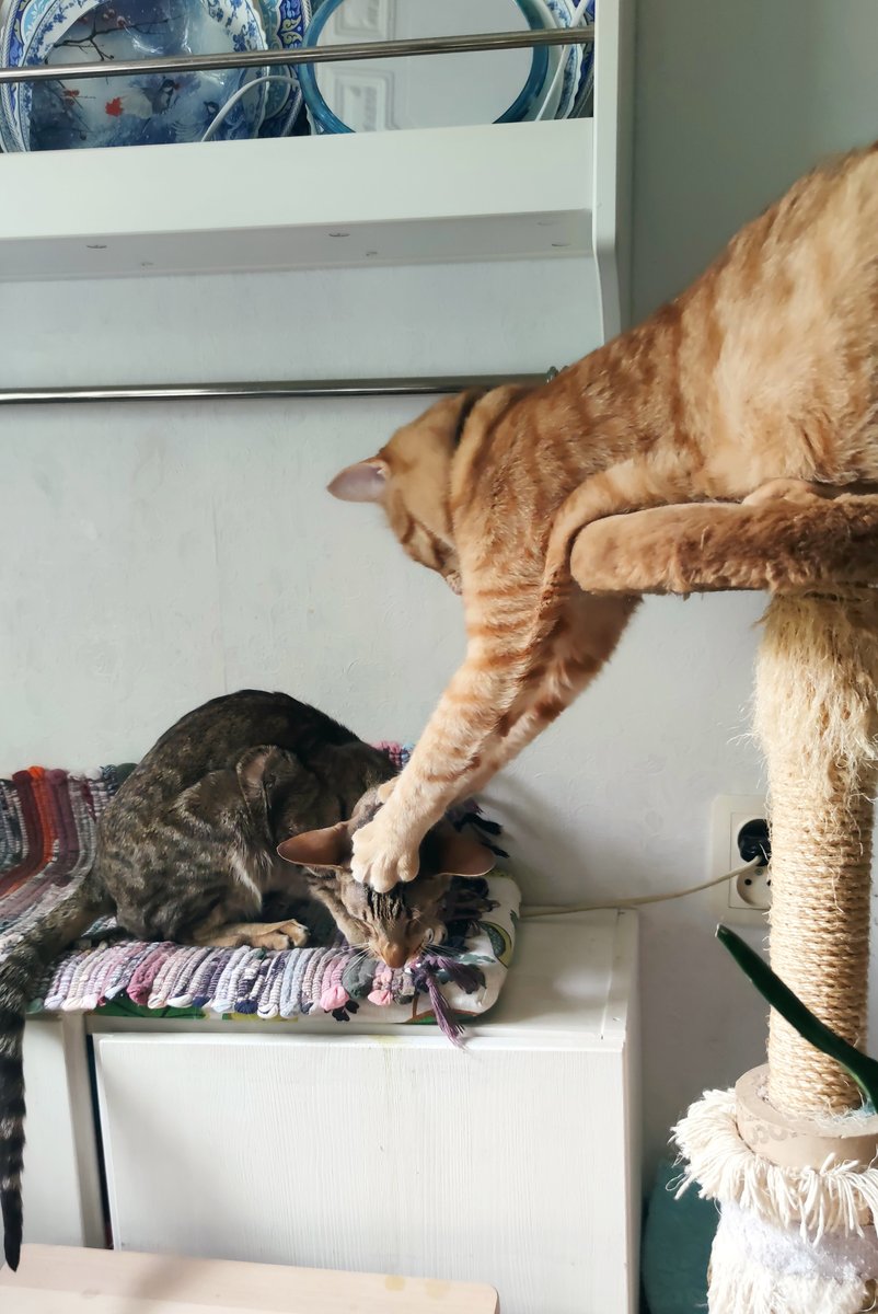 Повзрослев, Танка остепенилась, перестала играть с Кузей и стала единоличницей, но с Кузей периодически общается, иногда аккуратно занимая его лежанку. Происходит конкуренция. pic.twitter.com/6DvLDDQWim