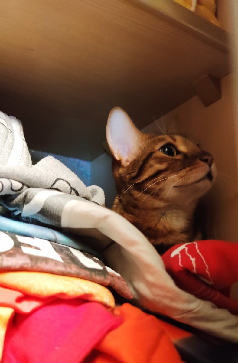 Ещё один факт о Нинке. Любит устраивать гнездовье в шкафу, предварительно часть вещей с полки скидывает. А ещё она как-то прогрызла мешок с кормом, который там хранился. Каджит ничего не крал, каджита просто спровоцировали! pic.twitter.com/lUrvh0W8lL