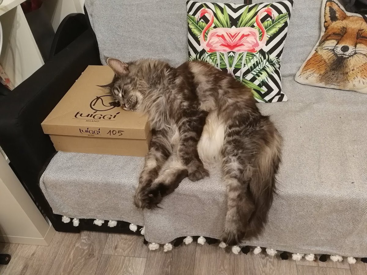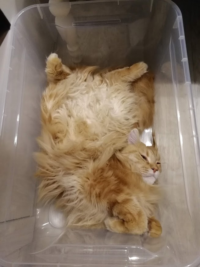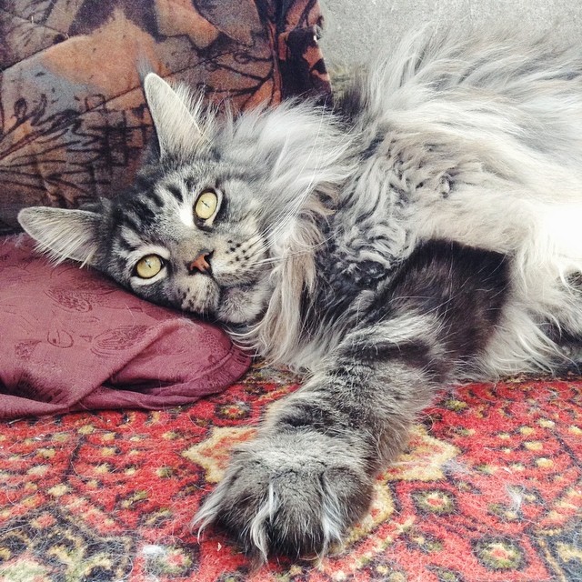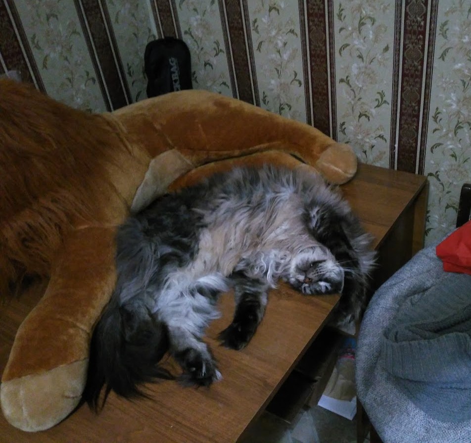 Со временем он обжился всякими бытовыми полезностями и окончательно расслабился. Ну а мы начали осознавать, что такое жить с мейн-куном :) pic.twitter.com/zRxIlftEGI