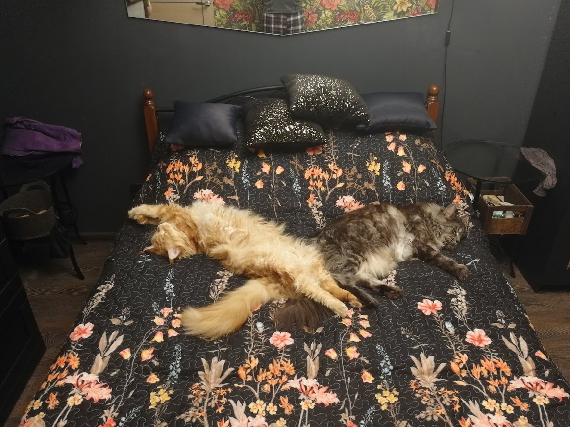 Поведение Кайзера тоже немного поменялось. Не, он так и остался той же жопкой вредной. Также бесоебит, жует провода и гирлянды. Но стал гораздо больше времени проводить с нами, спать с нами.