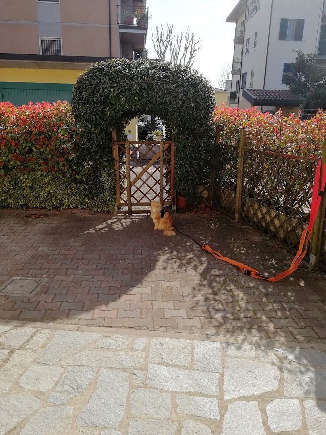 Но была некоторая компенсация в виде небольшого закрытого дворика. Пунша туда выпускали гулять без проблем. А вот для Каси пришлось соорудить длинный поводок - его безрассудство до добра бы не довело :) pic.twitter.com/L0Sgiiu0FL